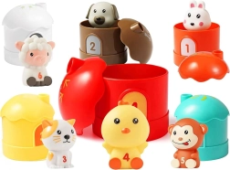 Ta komplet živalic s hišicami spodbuja otroško ustvarjalnost in učenje skozi igrivo spoznavanje števil ter razvoj motoričnih spretnosti.