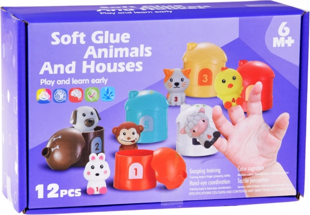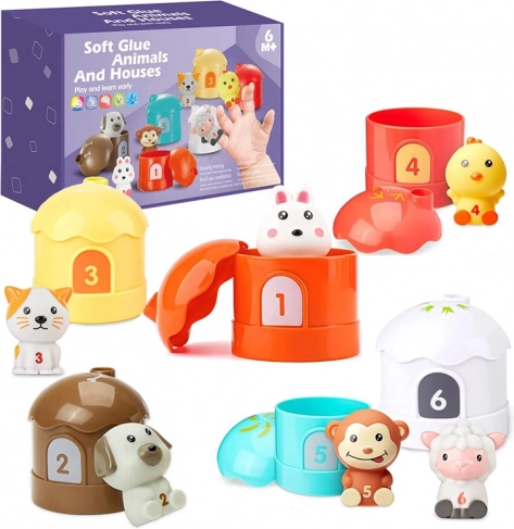 Komplet gumijastih živalic z hišicami in številkami