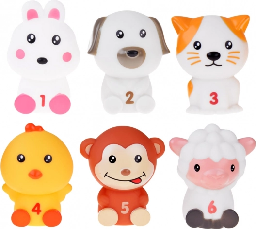 Komplet gumijastih živalic z hišicami in številkami spodbuja ustvarjalnost in učenje, primeren tudi za igro v kadi.