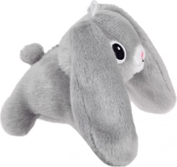 Plišen zajček je narejen iz mehkega, prijetnega na dotik materiala. Njegove oči, nos in zabavna usta so vezeni, kar zagotavlja varnost tudi za mlajše otroke. Izstopajo tudi njegova velika, padajoča ušesa in majhen rep. Zajček stoji samostojno in ima na glavi majhno zanko, s katero se lahko spremeni v prikupen obesek na nahrbtniku ali torbici.