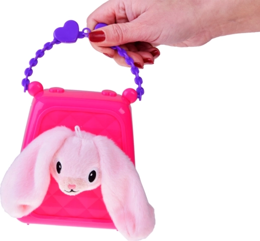 Čudovita torbica je narejena iz plastike v prijetnih barvah in okrašena s tridimenzionalnim dekorjem in srčkastim ročajem. Zaradi srca v obliki odprtine iz torbice kuka zajčkova glava, kar ustvarja očarljiv vtis med sprehodom. Torbica je opremljena tudi z zapenjanjem na srčkaste gumbe, kar poudarja celoten prikupen videz. Popoln dodatek k vsakemu outfitu.