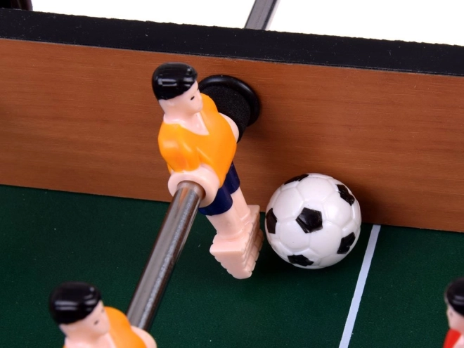 Mini namizni nogomet prinese vzdušje prave tekme v vašo dnevno sobo. Dve barvno ločeni moštvi, gladko gibanje figuric na kovinskih palicah in pregleden števec rezultata zagotavljajo napete dvoboje in odličen trening refleksov. Idealno za otroke in odrasle.