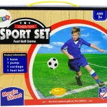 Komplet je primeren za otroke od 3. leta starosti in je izdelan iz varnih, certificiranih materialov. Odlična izdelava in estetika bosta navdušili vsakega malega nogometaša!