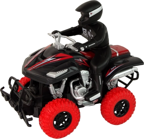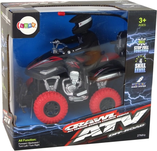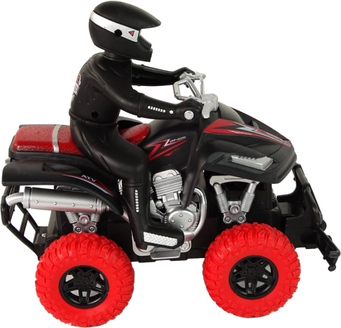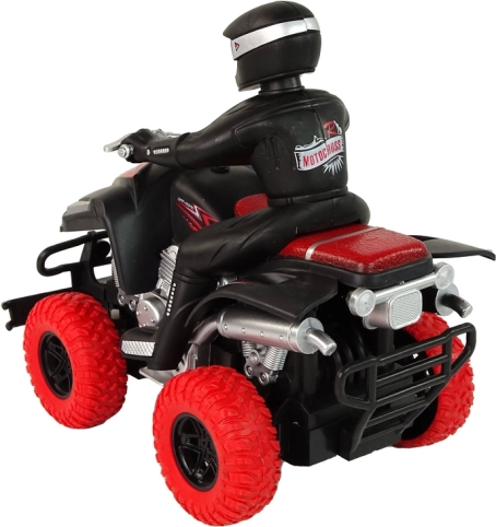 Uživajte v vožnji z edinstvenim modelom štirikolesnika, ki ga upravljate s priročnim daljinskim upravljalnikom. Ta model omogoča popoln nadzor – lahko se premikate naprej, nazaj ter zavijate desno in levo. Zahvaljujoč prilagodljivim sprednjim kolesom je manevriranje s tem vozilom odlično in realistično.