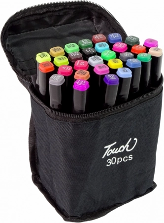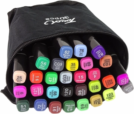 Komplet 30 flomastrov Touch prinaša raznoliko paleto barv z izrazito pigmentacijo alkoholnega črnila, ki zagotavlja bogate in obstojne risbe. Flomastri imajo dve konici – široko ploščato za velike površine in tanko za detajle, kar nudi domiselne možnosti pri risanju. Konice so izdelane iz trpežnega materiala, razporeditev črnila je enakomerna, zato vam ni treba skrbeti za izsuševanje ali razlivanje.