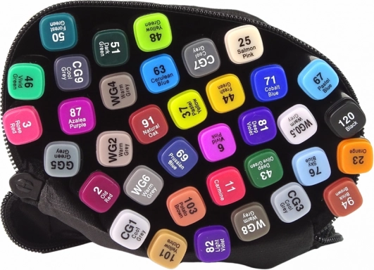 Komplet je zapakiran v praktičnem etuiju z ročajem, kar olajša shranjevanje in prenašanje markerjev. Odlična izbira za darilo za vsakega ljubitelja umetnosti.