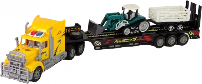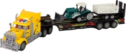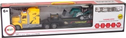 Nizkopodna prikolica in odstranljiv priklopnik omogočata varen prevoz delovnih strojev in tovora. Odlično za simulacijo pravega transporta na gradbišču.