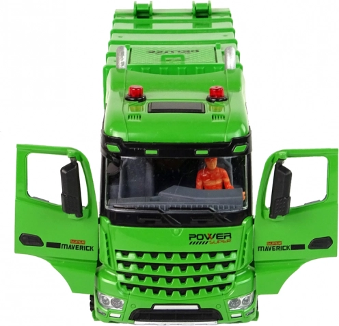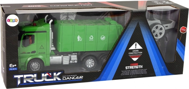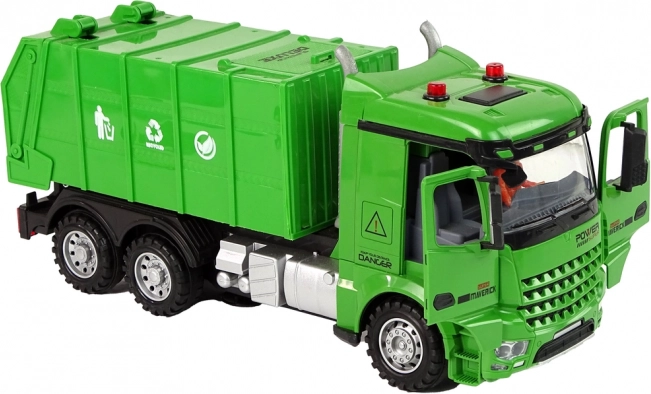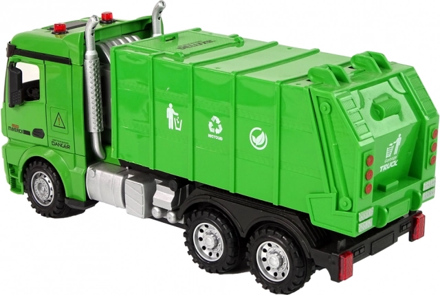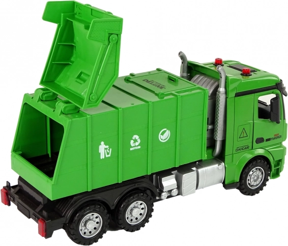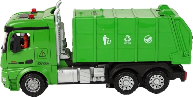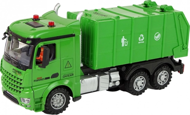 To daljinsko vodeno smetarsko vozilo v zeleni barvi z reciklažnimi simboli verno posnema pravo vozilo. Otroci bodo uživali v realističnih efektih – sprednjih žarometih, zvokih motorja in vzvratne vožnje ter smerokaznih lučeh pri zavijanju. Vozilo je odlično za igro doma in na prostem ter naravno spodbuja zavedanje o ločevanju odpadkov.