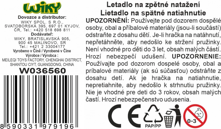 Kovinsko letalo 14 cm s povratnim mehanizmom. Dve barvi – modra in rdeča. Trpežna izvedba, odlična zabava za male pilote in zbiratelje.