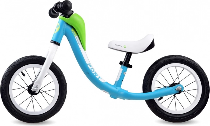 Poganjalec RoyalBaby PONY Sprint je idealno prvo kolo za male kolesarje. Aluminijasta konstrukcija (razen sprednje vilice) z nizkim vstopom poenostavi vzpenjanje in sestopanje, medtem ko napihljiva 12" kolesa odlično blažijo neravnine. Otroci naravno trenirajo ravnotežje in koordinacijo brez potrebe po pomožnih kolesih.
