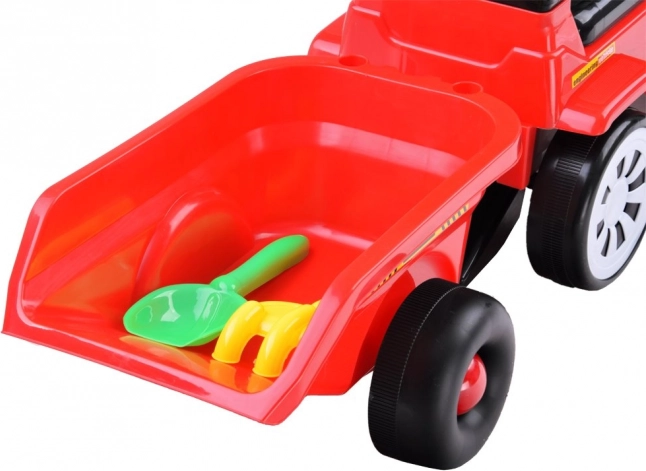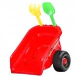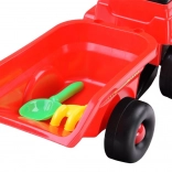 V kompletu je snemljiva prikolica z nosilci za lopatko in grabljice. Otroci lahko prevažajo igrače, pesek ali drobnarije na vrtu in doma.
