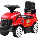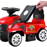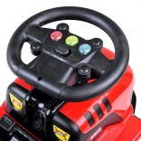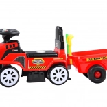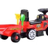 Otroški poganjalec v obliki traktorja s prikolico ponuja zabavno in varno vožnjo za najmlajše. Opremljen je z melodijami in svetlobnimi učinki, vrtljivim volanom, odlagalnim prostorom pod sedežem ter praktično prikolico za igrače in orodje. Lahka in stabilna konstrukcija z zadnjo varnostno zaščito proti prevrnitvi je idealna za dom in vrt.