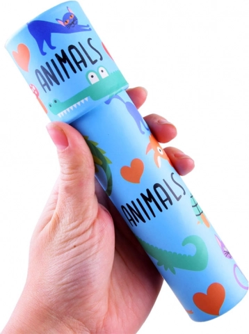 Odkrijte čar barvitih vzorcev z otroškim kalejdoskopom – klasično igračo, ki razvija domišljijo in vizualno zaznavanje. Preprosto vrtite tulec in pred vašimi očmi se bodo prikazovali neskončni simetrični vzorci iz pisanih koščkov. Lahek in trpežen kartonski tulec z živalskimi motivi je idealen za male raziskovalce.