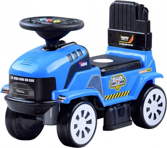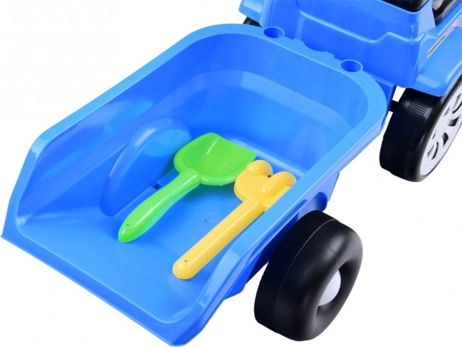 Otroški poganjalec v obliki traktorja z odklopljivo prikolico prinaša zabavo doma in na vrtu. Ponuja svetlobne učinke, vesele melodije na volanu, shranjevalni prostor pod sedežem in ergonomsko zasnovo za varno vožnjo. Priložene so igrače – lopatka in grablje ter možnost priklopa prikolice.