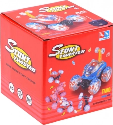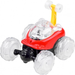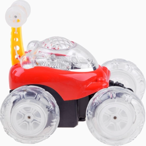 Mini kaskaderski avtomobilček je zasnovan za noro izvajanje trikov in gladke obrate. Sprednja os omogoča prosto vrtenje in rotacijo, zato zlahka izvede efektne obrate za 360°. Prozorna, svetleča kolesa med vožnjo ustvarjajo impresivne svetlobne učinke, ki navdušijo tako otroke kot odrasle.