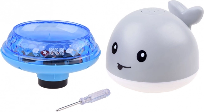 Prisrčna vodna kitovka spremeni vsako kopanje v zabavo. Po potopu se sama aktivira, šprica vodo kot mini fontana in jo spremljajo barvne LED lučke. Ko jo namestite na platformo, se požene, giblje se v ritmu vesele glasbe in sveti – idealno za kad, bazen ali igrive trenutke v kopalnici.