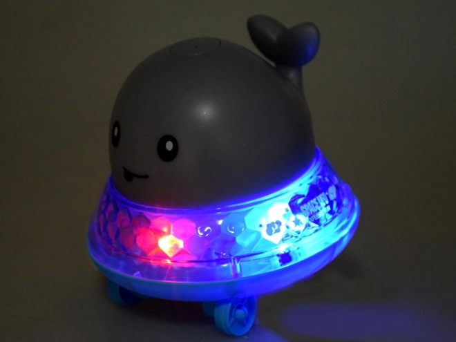 Izven vode posadite kitovko na platformo, preklopite on/off in opazujte vožnjo v ritmu vesele glasbe z svetlobnimi učinki.