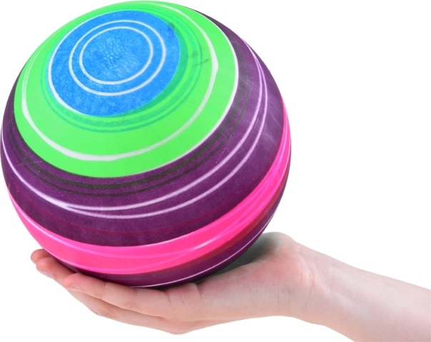 Žoga ima izrazite mavrične barve, ki pritegnejo tako otroke kot odrasle.