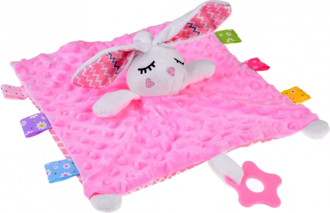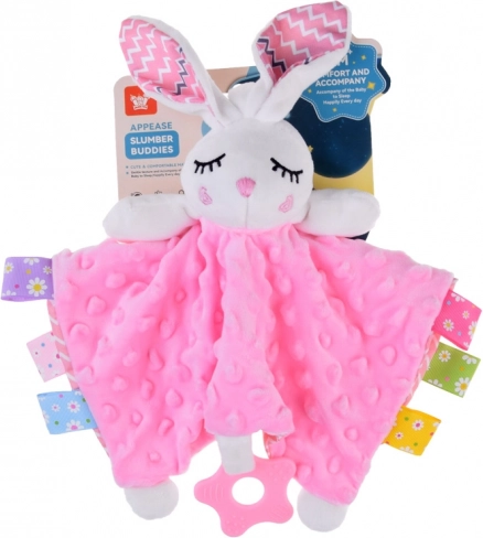 Ljubka plišasta ninica v obliki zajčka z mehko dekico, barvnimi etiketkami in silikonskim grizalom dojenčku nudi mir in občutek varnosti. Spodbuja čutni razvoj, ponuja raznolike teksture, šušteče in piskače elemente ter je idealna za posteljico, voziček in avtosedež.