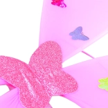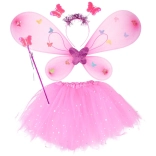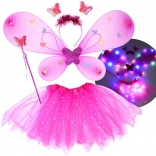 Ta nežen vilinski kostum izstopa z živo rožnato barvo in igrivimi metuljčnimi okraski. Tutu krilo iz tila z elastičnim pasom je posuto z drobnimi bleščicami, metuljeva krila krasijo barviti metuljčki, celotno čarovnijo pa zaokrožijo LED lučke za čudovit učinek tudi v somraku.
