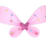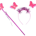 Svetlo rožnata krila z barvitimi metuljčki dopolnjujeta ujemajoča se paličica in naglavni trak – vse v enotnem vilinskem slogu.