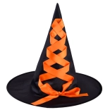 Klasični črn čarovniški klobuk z oranžnim satenastim trakom doda kostumu avtentičen videz in odlično drži obliko.