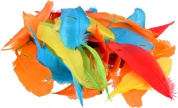 Set vsebuje različne komponente, kot so očke, peresa in filc, kar omogoča ustvarjanje raznolikih umetniških del in spodbuja domišljijo.