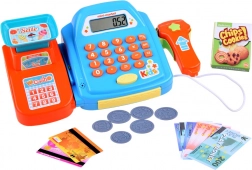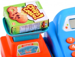 Realistični čitalnik izdelkov z zvokom in odpirajoč se predal za kovance in bankovce spremenita vsak nakup v pravo blagajniško izkušnjo.