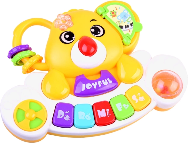 Prisrčen otroški klavirček v obliki medvedka bo razveselil vsakega dojenčka in malčka. Ponuja več igralnih načinov s toni, melodijami in živalskimi zvoki, barvno osvetljeno lučko ter interaktivne elemente za razvoj fine motorike.