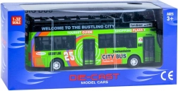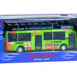 Slogoven kovinski dvonadstropni avtobus bo navdušil male voznike in potnike. Zahvaljujoč pull-back mehanizmu, odpirajočim se drsnim vratom, svetlobnim efektom in zvokom motorja prinaša realistično zabavo doma in na poti. Kovinsko ohišje in skrbna izdelava zagotavljata vzdržljivost in dolgo življenjsko dobo igrače.