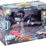 Zabavno RC avto Cross Country z realističnim volanskim upravljalnikom otrokom prinaša veliko veselja. Zahvaljujoč gumijastim pnevmatikam, visokemu podvozju in odporni plastični karoseriji se zlahka spopade z neravnim terenom tako v sobi kot na dvorišču. Upravljanje je intuitivno in otrokom omogoča, da se počutijo kot pravi vozniki.
