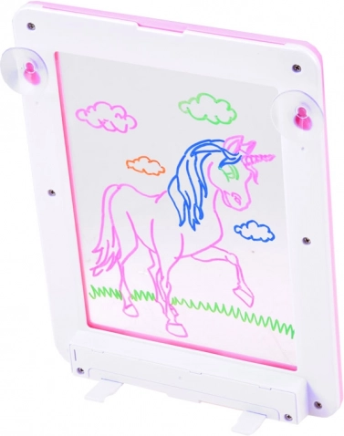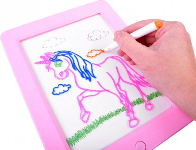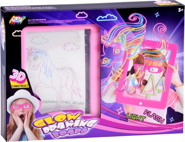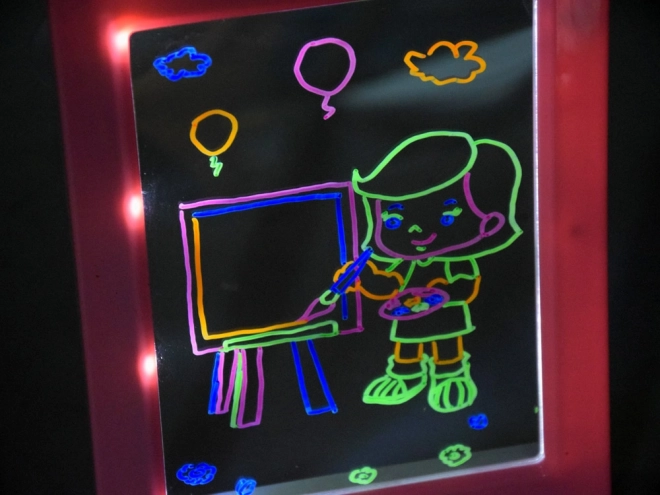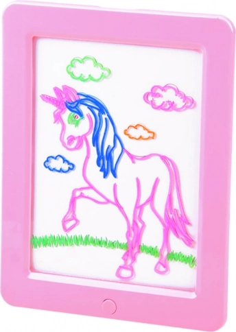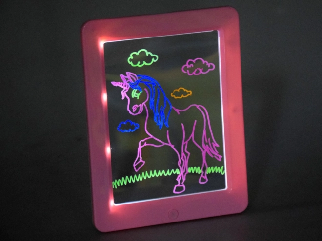 Kreativna osvetljena tabla za otroke prinaša neonsko risanje, možnost prezračunavanja s šablonami in efektno LED osvetlitev. Z 3D očali dokončane slike oživijo v prostoru, kar zagotavlja veliko zabave ter razvija domišljijo in fino motoriko.