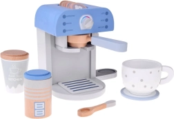 Igra s kavnim aparatom spodbuja ustvarjalnost, uči o vsakodnevnih opravilih in krepi fino motoriko s pomočjo manipulacije z dodatki.
