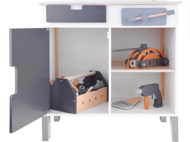 Del kompleta so tudi skladiščni prostori za organizacijo posameznih komponent. Otroci se tako lahko učijo ne le rokodelskih spretnosti, temveč tudi organizacije in urejenosti. S tem kompletom nobeno popravilo ne bo več problem!