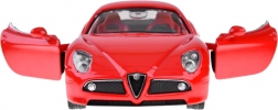 Ta model avtomobila Alfa Romeo 8C Competizione je izdelan z natančno pozornostjo na detajle. Ima odpirajoča se vrata, kar omogoča avtentično avtomobilsko izkušnjo. Druga funkcija vključuje glasen motor in svetlobne učinke, kot so sprednje in zadnje luči ter osvetlitev armaturne plošče. Karoserija je kovinska, kolesa so gumijasta, in podvozje je iz plastike. Vozilo je poganjano s sistemom friction power, kar omogoča realistično gibanje naprej po pritisku in sprostitvi na gladki površini.