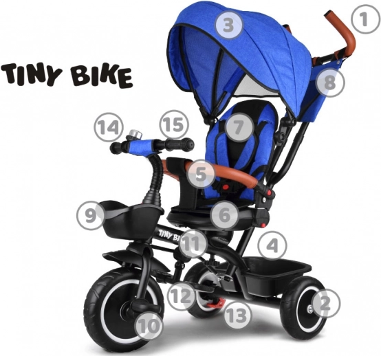 Praktičen otroški tricikel 3v1 TINY BIKE raste z vašim otrokom od 6 mesecev do 5 let. Ponuja kombinacijo vozička, potiskalnika in tricikla v enem. Zahvaljujoč vrtljivemu sedežu, 5-točkovnim pasom, zložljivi strehici in starševskemu ročaju z gladkim krmiljenjem zagotavlja maksimalno varnost, udobje in vsestranskost za vsakodnevne sprehode.