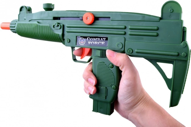 Kratka pištola z zvočnimi efekti (baterije AG13 priložene) in napenjalna puška za akcijska doživetja pri varni igri.