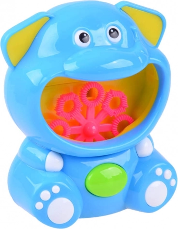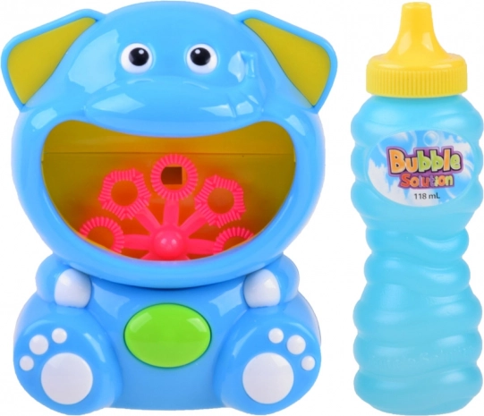 V kompletu je plastični aparat v obliki slona in steklenička z mehurčkasto raztopino – začnete lahko takoj po vstavitvi baterij.