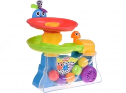 Ta ikonična igrača znamke PLAYSKOOL združuje čar gibajočih se žogic s preprostim upravljanjem. Otroci mečejo žogice v lijak, spremljajo njihovo vrtinčenje in ponovno pojavljanje na vrhu, od koder se kotalijo po spiralni progi. Ritem gibanja in žive barve pritegnejo pozornost in podpirajo zbranost.