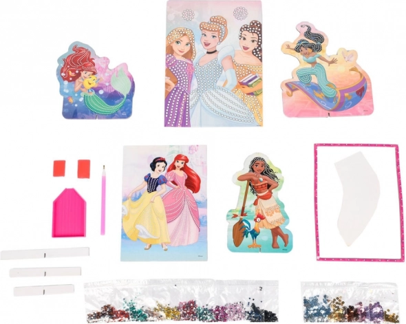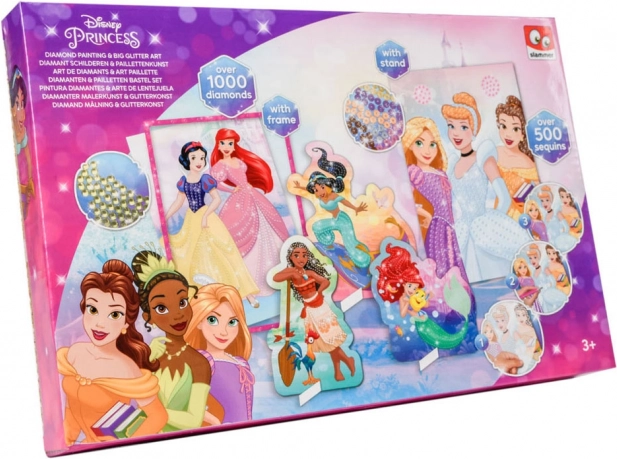 Vstopite v čarobni svet pravljic s kreativnim setom DISNEY PRINCESS. Vsaka označena točka na šabloni ustreza barvi kamnčka, zato je ustvarjanje enostavno, pregledno in zelo zadovoljivo. Rezultat? Čudovito bleščeča slika, ki bo polepšala otroško sobo ali služila kot izvirno darilo.