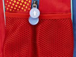 Glavni predal s sprednjim žepom na zadrgo in stranskim mrežastim žepom olajša organizacijo šolskih potrebščin.