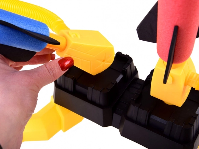 Nastavite smer in višino, izstrelite rakete in tekmovanje se lahko začne. Lahka in prenosna konstrukcija omogoča enostavno shranjevanje in transport, kar vam omogoča, da vzamete igračo kjerkoli. Uporabite to zabavno in poučno igračo za spodbujanje otrok k gibanju in sodelovanju.