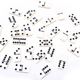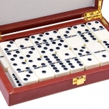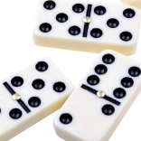 Domino je logična igra, kjer se uporabljajo ploščice imenovane kamni. Vsak kamen je razdeljen na dve kvadratni polji z označenimi pikami, podobno kot kocka za metanje. Ta najbolj priljubljena različica vsebuje 28 kamnov s kombinacijami števil od 0 do 6. Igra je zasnovana za 2 do 4 igralce. Popolna za družinske večere in srečanja s prijatelji.
