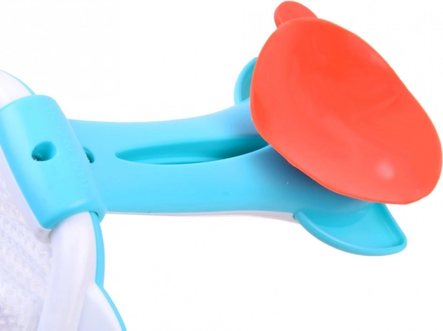 Mrežico preprosto pritrdite na gladko površino in jo spremenite v koš za igrače. Otrok lahko vadi metanje “na koš” in se uči pospravljati po kopanju.