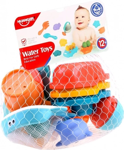 Komplet ponuja veliko načinov, kako zaposliti otroke med kopanjem: lovite plavajoče igrače z mrežico, gradite in prelivajte vodo z lončki, odkrijte skrivališča v razpirajočih se kroglah in pustite gumijastim živalicam škropiti vodo kot mini fontane. Zaradi kakovostne plastike in gume so igrače lahke, varne in idealne za vodo.