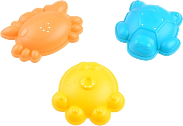 Trije modelčki s temami raka, želve in hobotnice bodo zagotovili veliko zabave. Vsak ima luknje za enostavno sproščanje peska.