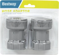 Adapterji za cev bazena s premerom 38 mm za povezovanje ventilov v filtrskih črpalkah Bestway s premerom 32 mm. Izdelano iz visokoodpornega in korozijsko odpornega materiala.