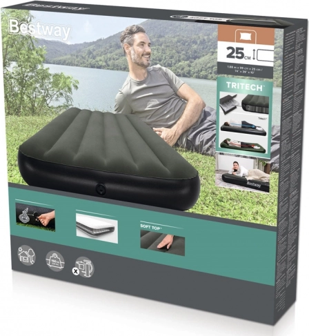 Napihljiva blazina BESTWAY Tritech Twin prinaša zanesljivo udobje za enega uporabnika, ne glede na to, ali gostite obisk, spite v kampu ali potrebujete hitro začasno ležišče. Večslojne stene iz materiala TRITECH povečujejo odpornost proti udiranju in zagotavljajo oblikovno stabilnost skozi vso noč, medtem ko notranja konstrukcija I‑beam dodaja trdnost in stabilnost. Prijetna, mehka vinilna površina povečuje udobje pri spanju.