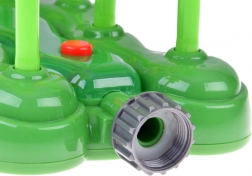 Montaža je stvar trenutka – zahvaljujoč univerzalnemu nastavku ga zlahka priključite na običajno vrtno cev. Trpežna plastična izvedba v živahnih barvah zagotavlja dolgo življenjsko dobo in varno igro. V paketu so priložene baterije AG13 (3 kos), zato lahko zabavo uživate takoj po razpakiranju.