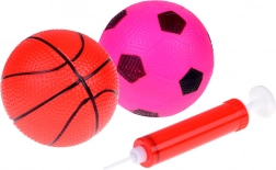 Dve napihljivi žogici s pumpico sta pripravljeni za metanje in preproste igre z žogo. Pernata lotka vadi natančnost in odzivnost.
